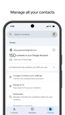 "Контакти" вам омогућавају да безбедно чувате резервне копије контаката на Google налогу и синхронизујете их на свим уређајима. Лако приступајте, организујте и мењајте податке, враћајте избрисане ставке и никада не пропустите рођендане. Нека ваше везе увек буду организоване и ажурне.