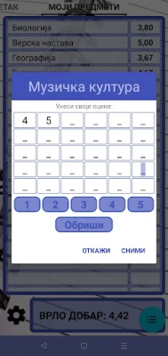 Program koji ti pomaže da lako pratiš raspored časova, beležiš sve ocene i bez napora izračunavaš prosek. Upravljaj svojim akademskim uspehom jednostavno i efikasno, bez brige o zaboravljanju detalja.