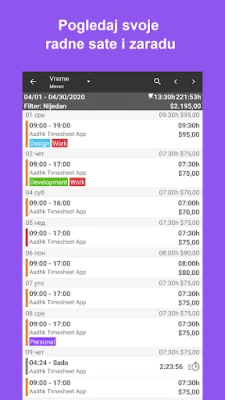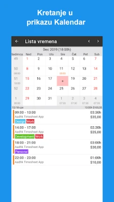 Fleksibilnost je ključna, zato vam **Praćenje radnog vremena** nudi višestruke opcije za unos vremena: koristite precizni tajmer, praktični dodatak (widget) ili integrisani kalendar. Lako pregledajte svoje aktivnosti unutar kalendarskog prikaza i uvek budite svesni svog angažovanja i potencijalne zarade. Aplikacija podržava praćenje više projekata i klijenata istovremeno, automatski obračunava dnevni i nedeljni prekovremeni rad, te omogućava zaokruživanje vremena na intervale od 3, 5, 6, 10, 15, 30 ili 60 minuta za maksimalnu prilagodljivost.