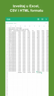 Pored toga, aplikacija nudi sveobuhvatne finansijske funkcije. Definirajte period plaćanja – mesečno, polumesečno, dvonedeljno ili nedeljno – i neka **Praćenje radnog vremena** samostalno uključi poreze, odbitke, troškove i kilometražu u vaše obračune. Organizujte sve svoje radne sate pomoću prilagodljivih oznaka i steknite dragocen uvid u svoje angažovanje kroz jasne grafičke prikaze. Za profesionalnu komunikaciju, jednostavno delite liste vremena u Excel, CSV i HTML formatu ili generišite elegantne PDF fakture direktno za svoje klijente.