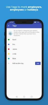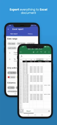Zaronite dublje u svoje podatke uz detaljne statistike i grafike dostupne za mesečne, nedeljne ili prilagođene periode. Funkcija praćenja malog poslovnog tima olakšava organizaciju i koordinaciju. Za potpunu sigurnost, obezbeđena je automatska sigurnosna kopija u oblaku, dok opcije deljenja putem Dropboxa, e-pošte ili Google diska omogućavaju lako prosleđivanje izveštaja. Vizuelno sortirajte podatke po boji, dodajte oznake i beleške za bolju organizaciju, a dodatak kalendara obezbeđuje brzu navigaciju kroz istorijske podatke. Izvoz prilagođenih perioda u Excel list daje vam potpunu kontrolu nad vašim podacima za dalje analize.