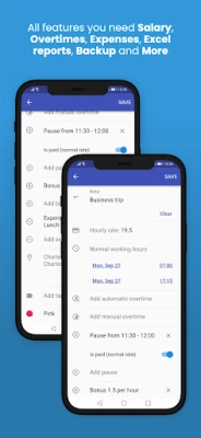 Sa intuitivnim sistemom prijave i odjave, automatski se obračunavaju dnevni i nedeljni prekovremeni sati, bez ikakvog dodatnog napora. Fleksibilnost je ključna, pa aplikacija podržava praćenje vremena po satu ili paušalno, uključujući besplatne ili plaćene pauze, različite tipove smena, kao i jednokratne ili satne bonuse i troškove. Sva vaša zarada se automatski izračunava, pružajući vam jasan i transparentan uvid u vaše finansije u svakom trenutku. Dodatno, možete kreirati šablone za ponavljajuća podešavanja, što značajno štedi vaše vreme i smanjuje mogućnost greške.